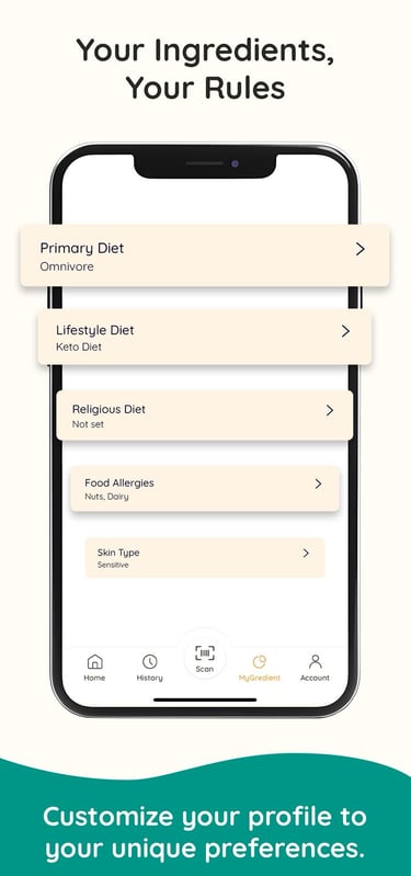 Discover smarter choices with MyGredient. Our AI-powered app helps you navigate ingredients, ensuring your selections align with your unique dietary needs and lifestyle preferences.